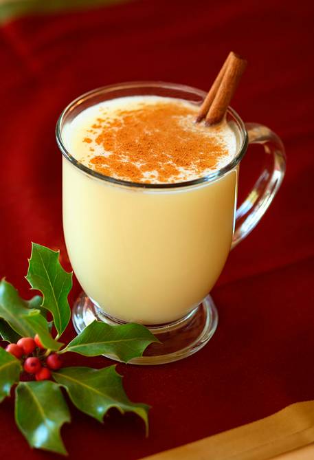牛奶、奶油、肉桂、肉豆蔻粉、蛋,再辅以白兰地、波本或者是朗姆酒,这样混合制成的奶油般浅黄色的饮品,就是 18 世纪英国殖民者带去美国的蛋奶酒。