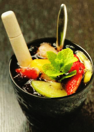 饮品最大的创意来自其木质的甜品匙,想要哪种水果的味道,就碾碎哪种,往往自己动手,乐趣多多。