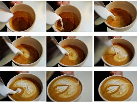 所以说,咖啡拉花实际上是两种泡沫(而非液体)混合出来的效果。知道了这个以后,再看咖啡拉花,除了赞叹之外,是不是增添了一份其他的感受呢?