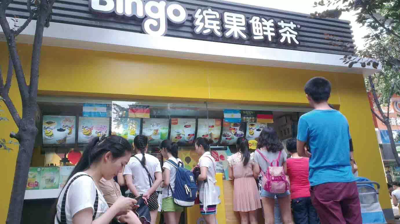 2008年寒冬,重庆观音桥步行街出现了一家以明黄色为主题的街饮店--缤果鲜茶,三个年轻人微笑注视着店外排队的人群,终于可以舒展一口气了:他们成功了!