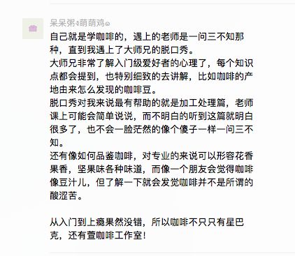 “咖啡是成年人的快乐水“,不限年龄、性别、地域。他的学生群里,每天也是满满的故事和正能量:
