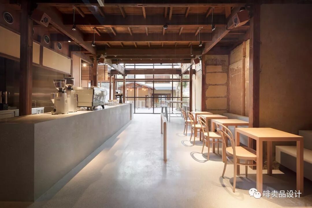 BLUE BOTTLE COFFEE是一家位于日本京都的极简主义空间,由Schemata Architects设计。把美国品牌的BLUE BOTTLE COFFEE与日本文化融合,用空间“创造平等的关系”。从访客踏进这个空间里的第一步开始体现——地板,设计师花了许多心思在店内的地板。原本的地板高出地面50公分,是日本传统建筑的特色,设计师拆除这些原本的地板,重新创造新的地面。原来,为了在视觉上将庭院的鹅卵石地面延伸到内部,所以地面采用含有相同类型鹅卵石的磨石子地板。从视觉、材质上的连结,串连起室内、户外,传递出自然的宁静感。