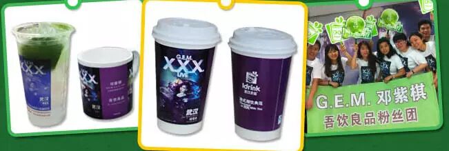 吾饮良品搭讪邓紫棋第二季的“我是歌手”造就了邓紫棋,号称港式潮饮第一品牌的吾饮良品也开始不务正业,搭讪起了邓紫棋。明星的加入也让吾饮良品多了一道明星的光环,为了吸引顾客,邓紫棋武汉演唱会也被印在了门店的外带杯上。