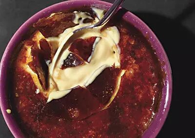 - 把1杯冰淇淋和4杯咖啡豆放小锅里煨煮,离火后盖上锅盖并静置至少20分钟。烤箱预热至160摄氏度,在锅中加热2/3杯糖和半杯水约11分钟,不断搅拌至糖溶化呈深琥珀色。向咖啡和焦糖混合物中各拌入一半1杯奶油,然后将咖啡奶油混合物倒入焦糖奶油混合物中。打发8个蛋黄,盐和3杯砂糖成浓稠混合物,倒入布丁杯子中放入烤箱烘烤65到70分钟。然后放入冰箱冷藏至少3小时。最后在每个布丁上撒1茶匙生糖,用火烤焦成深琥珀色,再次冷藏至少30分钟,直到糖馅料变硬即可。