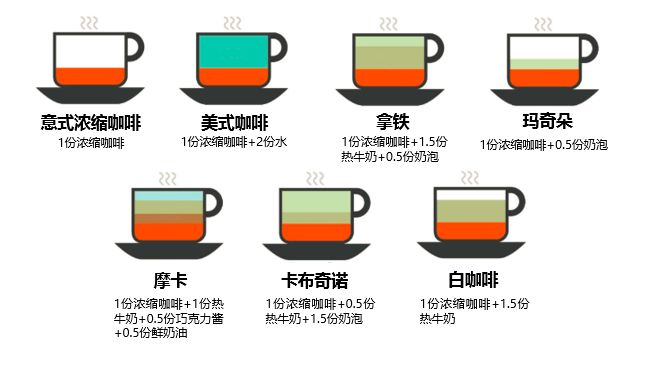 咖啡店基础设备清单及均价,数据来自鲸准研究所如果咖啡店仅提供咖啡,不包含糕点和简餐,则人员配置相对简单。一家100平方米的咖啡店大概会设置30个座位,按两班倒计算,需要6~8名服务人员。根据北京当地工资水平,每位员工工资在5000~7000元/月,咖啡店每月人力成本为5万元左右。通过这样一个简化模型,我们可以粗略估算一家北京朝阳区商街咖啡馆的经营成本:一次性投入25万~30万元,包含设备和装修,之后每月固定支出15万元左右(本文并未考虑损耗、房租押金、设备折旧、证照办理等隐性费用)。-02-一杯咖啡的成本咖啡的成本主要是三方面:咖啡、奶、辅料。咖啡豆是构成一杯咖啡的基本原料。烘焙好的咖啡豆,先用磨豆机研磨成咖啡粉,再利用咖啡机萃取成咖啡液,就形成了一杯意式浓缩咖啡Espresso。意式浓缩几乎称得上所有花式咖啡的基础,例如一杯美式咖啡即“1份浓缩咖啡+2份水”,一杯拿铁则是“1份浓缩咖啡+1.5份热牛奶+0.5份奶泡”。