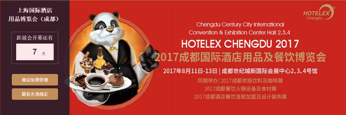 再附上全部展会内容、预登记、路线、模块等等不用客气,我是雷锋A预登记2017成都国际酒店用品及餐饮博览会将于2017年8月11日-13日在成都世纪城新国际会展中心2-4号馆隆重拉开序幕,登入以下网址进行网上预登记,或扫描下图二维码关注“上海国际酒店用品博览会” 官方微信进行预登记。