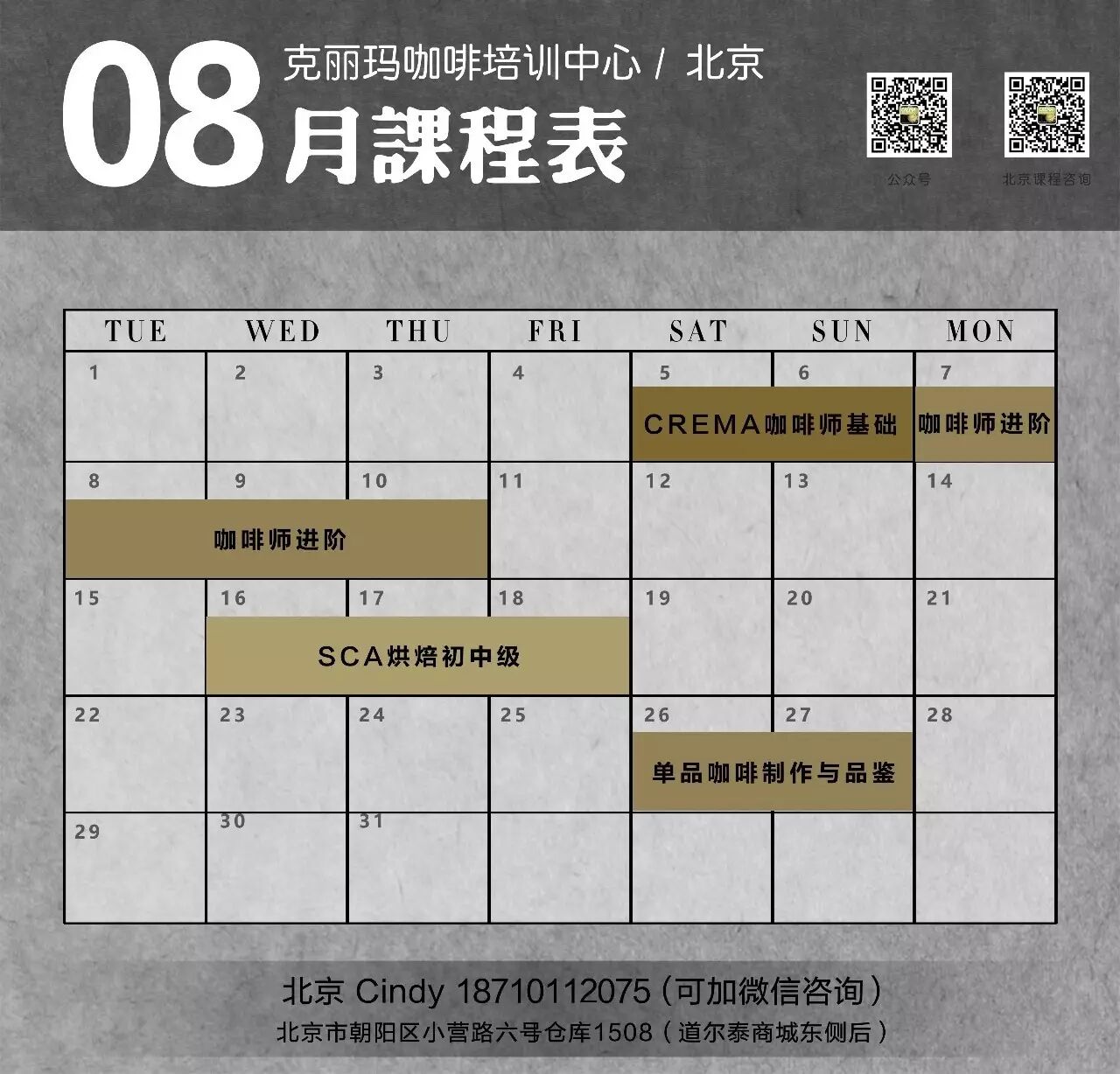 08CREMA克丽玛咖啡培训 北京08月课程表