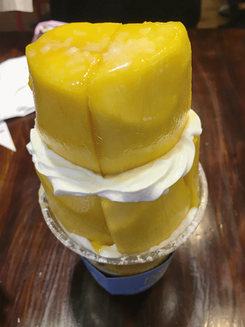 虽然小小的店面样子简陋,但是里面的甜品可不一般,很大一杯,上面铺满了香甜的芒果,中间是细腻的冰沙,底下是香甜的椰奶,口感丰富不单调。店名:人在茶在南洋茶铺地址:上城区庆春路227号衣之家百货(衣之家百货门口)人均:16元