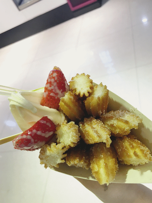 从韩国过来的甜品,把冰淇淋和油条完美的融合在一起,吃完这个以后,妈妈再也不担心我饿肚子啦!!!!店名:momo churros 韩国甜品地址:上城区延安路292号工联商场B2楼人均:18元
