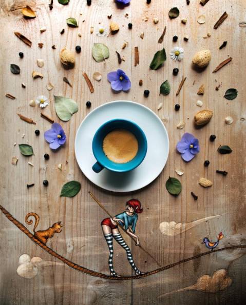 每日精品咖啡文化杂志咖啡行业交流请加饮品界前街咖啡,微信号:(长按复制)FrontStreetCoffee给大家分享一组意大利艺术家“Cinzia Bolognesi”的插画作品此插画非同寻常,Cinzia Bolognesi每天早上进行完早餐后,会把咖啡搭配小甜点,进行插画创作创作出来的作品天马行空,唯美写意,既美观又美味。