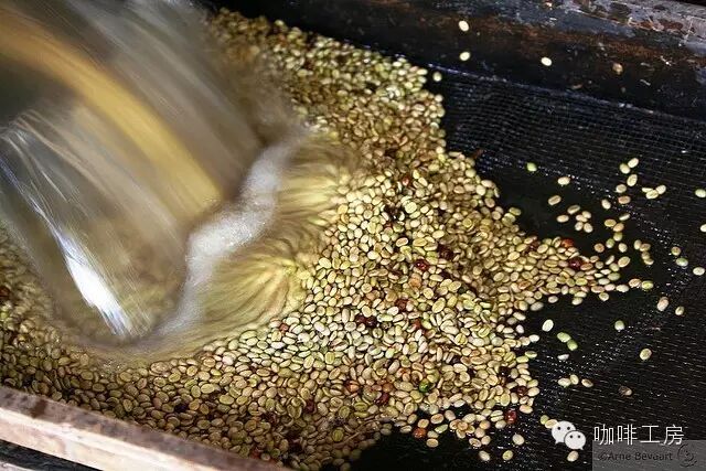 咖啡果如何变成咖啡豆的? 秒看完萨尔瓦多咖啡豆加工全过程 2022-07-26 责任编辑: 345 咖啡行业交流请加私饮品界前街咖啡,微信号:(长按复制)IMAKECOFFEE完全水洗法(Washed) (1) 选豆: 自然水洗法是用高压水洗机去除咖啡表层的粘膜的 (2)去除果肉: 使用机器将果皮与果肉除去,只剩下包着内果皮的咖啡豆。这时,豆子的外面还有一层黏膜,水洗的过程就是要洗净这层黏膜。 (3)发醇: 黏膜的附着力很强,并不容易去除,必须放在槽内约18-36小时,使其发醇,并分解黏膜。发酵的方法有两种,即湿行发醇与干式发醇,顾名思义,前者加水,后者不加水。发醇的过程中,种子和内部的果肉会产生特殊的变化,这是水洗法之中最影响咖啡风味的一个步骤。 (4)水洗: 使用水洗法的农场一定要建造水洗池,并能够引进源源不绝的活水。处理时,是将完成发醇的豆子放入池内,来回推移,利用豆子的摩擦与流水的力量将咖啡豆洗到光滑洁净。 (5)干燥: 经过水洗之后,这时, 咖啡豆还包在内果皮里,含水率达50%,必须加以干燥,使含水率降到12%,否则他们将继续发醇,变霉腐败。较好的处理方法是使用阳光干燥,虽然得费时1个-3个星期,不过,风味特佳,相当受到喜爱。另外,有些地方使用机器干燥,大量缩短处理时间,使得风味不如阳光干燥的咖啡。 (6)脱壳: 完成干燥的豆子便可以放在仓库里储存,或者交给工厂进行脱壳,除去内果皮与银膜。 (7)挑选与分级: 与日晒发一样,水洗咖啡都也有挑寻和分级的过程,用来剔除瑕疵豆,并确保较佳的质量,再交给出口商卖到世界各地。免责声明:文章部分来源于网络,网站部分内容如图片、我们会尊重原作版权注明出处,但因数量庞大,会有个别图文未来得及注明,请见谅。若原作者有任何争议均可与网站联系处理,一旦核实我们将立即纠正,由“饮品界网”整理编辑,转载请注明,本文意在传播咖啡文化,若侵权请告知删除,谢谢~!更多专业咖啡交流 请扫码关注微信:IMAKECOFFEE