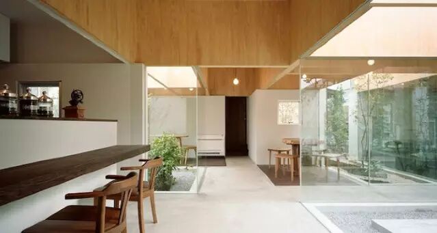 这座小咖啡屋名为Table Hat,位于日本神奈川小田原市一条安静的居住区街道。建筑不大,只有49.51平米,但内部却不显狭窄,通过玻璃的内置隔墙和天井的设置使得室内空间通透明亮。建筑的木质屋顶很有特色,其大小不一的体量对应着不同的内部空间,使得每个空间有着不同的空间感受。