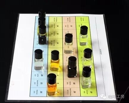 二、关于考试准备与考试感受 ①先来说说闻香瓶,咖啡鼻子36味,是分为四组的:酶化反应、焦糖反应、干馏反应以及芳香污染,每种9瓶。练习的时候把每种9瓶找出,分别牢牢记住这9种都有什么味道,然后反复去闻去记忆,最重要的记忆帮助是,对照SCAA的咖啡风味轮,把风味轮的结构和所有分组和味道全都记住,然后背写下来,与4组闻香瓶中的味道去一一对应,比对哪些是风味轮有而咖啡鼻子没有,哪些是咖啡鼻子有而风味轮没有,这样的记忆效果非常好,算是完全弄懂了风味轮和咖啡鼻子之间的关系。不同批次的闻香瓶,甚至味道上的差别还是蛮大的,在我自己闻香瓶记忆中的味道和考试时使用的是有一些差别的。不过考试更大的目的是考察考生的短时间内的嗅觉记忆力,因此只要之前做过认真的练习,应该还是可以顺利通过的。 ②再来说说笔试。笔试也是通过率比较低的一项。考题可以说是覆盖面很广,CQI网站上有参考的书籍以及大致的考试范围.内容包括种植、品种、产区、处理、杯测、制作、甚至是贸易等各个领域。个人建议在熟读SCAA杯测手册和生豆瑕疵手册基础上,尽量多看些各类咖啡书籍。