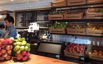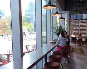 这里保留了wagas 典型的“手工质感”的特色,一块黑板出现在吧台上方的墙上,并且用工整的字体写着特价午餐和下午茶。开放的吧台和餐柜是punk juice的特色,“一方面能让客人看到食物的制作过程,让他们更放心;另一方面,客人看到的是不停在工作的店员,会觉得这个店充满活力。”在punk juice的餐柜上,总是摆着水果和食材,你会觉得自己杯子里的果汁就是从这里来的。
