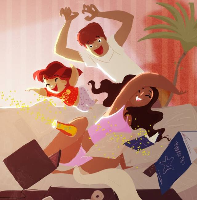 在美国旧金山住着一位阳光画家——帕斯卡尔·坎皮恩,他的插画总能给人带来温暖、愉悦和微笑。他有着幸福的家庭——美丽的妻子和三个可爱顽皮的孩子。帕斯卡尔·坎皮恩的绘画充满了温暖和善良。作品插画谈论人类永恒的价值 —— 幸福,爱,关怀亲人,友谊和享受生活的能力。笔者勾画出生活中最愉快的时刻,我们每个人应珍视和不炫耀。