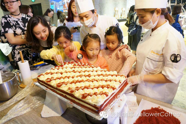而烘培区则最受孩子们的瞩目,因为一份巨大的甜品,正如童话王国中绚丽魔法,在我们的甜点老师巧手中,慢慢成型。蛋糕的绵密,咖啡的醇厚,让Party美妙的氛围再次升级。