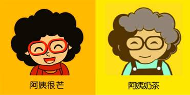 首先阿姨很芒以芒果作为主打产品,张阿姨则以奶茶作为主打,品牌定位完全不同,阿姨很芒的卡通形象也更加年轻时尚。
