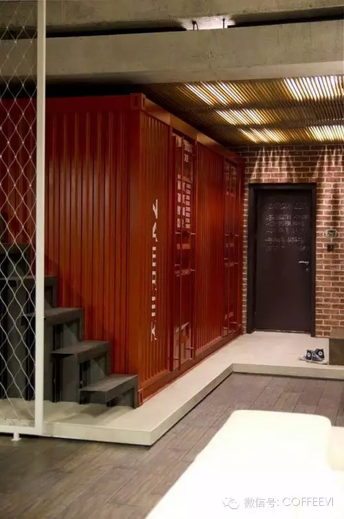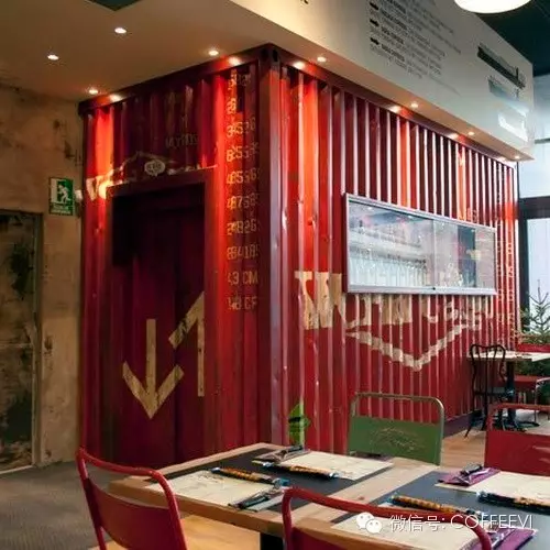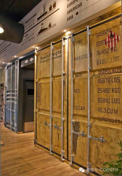 啡 | 空间 ⇛ 取集装箱的形,补咖啡馆的神 2022-08-13 责任编辑:啡视觉 700 来源:啡视觉 文字:咖啡沙龙 力哥这两年横扫国内咖啡馆的工业风,我就不想解释太多,或者有兴趣的朋友可以告诉我,我日后安排这类的专题。无可否认,集装箱是一个工业风格的表现手段,既然我们无法整个用,那就取其神髓好了,下面几张效果图是我前段时间帮深圳某品牌做的设计,虽然着实的处理得比较过分简练,但从思维上说,一切都从集装箱的灵感而来。在这个设计中,我把集装箱的铁皮用星铁板进行处理,主要用在墙体及吧台局部。至于为森么不直接用废旧集装箱切割件处理,那是因为我很想,但客户未必愿意。设计师(不对,我很谦虚的,我是美工),与客户永远是朋友与敌人的合体,一切都尽量用互相的妥协的方式处理问题。那我们看看用到极致的状况是怎么样的,看下图:怎么样?有感觉米有?再看看其他设计师的应用方式,其实用在门上,效果也是极好的。欢迎关注啡视觉微信公众号