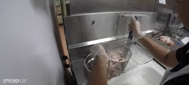 最近有人光顾了位于肯塔基州路易斯维尔的肯德基总部,并拍下了制作炸鸡的全过程。尽管那些使得肯塔基州炸鸡成为了肯德基的特别因素(比如没人知道吮指原味鸡的11味秘密配方是什么)是为了让肯德基成为神话而故意提出的,不过真正让人惊讶的是制作过程之简单(这也说明快餐产业的门槛太低),下面是制作过程:
