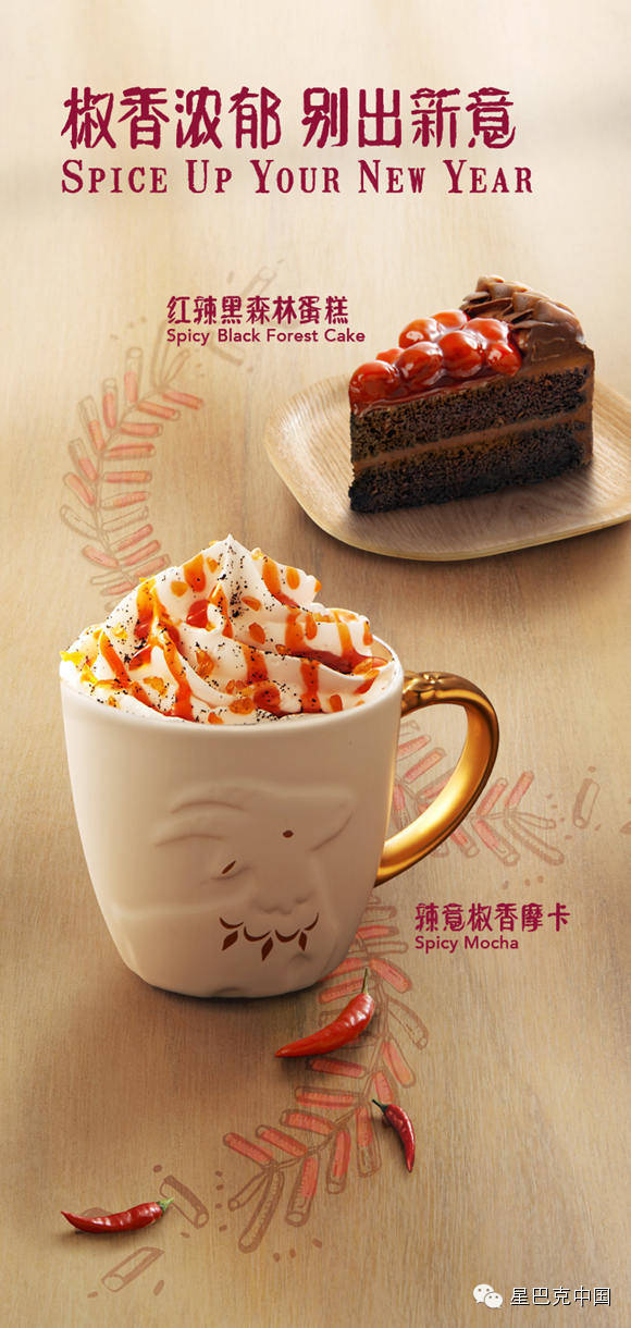 星巴克称这款辣意椒香是为中国特意打造的一款专属新滋味。创意灵感源于新年挂辣椒的习俗,寓意新的一年就像这丰收的辣椒一样红红火火。