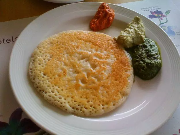 ▲Jared Zimmerman说,在印度中部地区,最有代表性的早餐是Uttapam,那是一种厚厚的蔬菜煎饼,配上酸辣酱。【哥伦比亚】