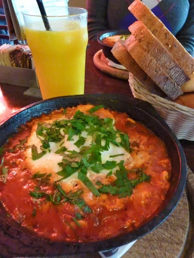 ▲Ahmed Bouchfaa说,摩洛哥的早餐都是甜的,有面包、蜂蜜、橄榄、枣,配上土耳其咖啡或薄荷茶。【以色列】 ▲Denise Aptekar说他们的流行早餐是Shakshuka,包括温水煮鸡蛋和番茄汁。而在咖啡馆和酒店的典型早餐则是有芝士、煎蛋饼、金枪鱼、橄榄、面包配黄油或果酱、以及沙拉。【英国】