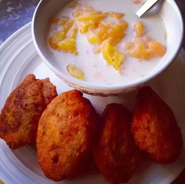 ▲Katherine Cortes说,菲律宾人的早餐也会有面包和咖啡,另外还有一种叫Tapsilog的很流行,是米饭加上肉和煎蛋。【尼日利亚】 ▲Oyinda Kosemani说,在尼日利亚,各部落之间的早餐也是有很大不同,但一份典型的约鲁巴人早餐通常都包括Ogi 和Akara,就是一种由玉米粉和豆子做成的蛋糕,同时也会吃番薯、煎蛋和油炸车前草。【委内瑞拉】