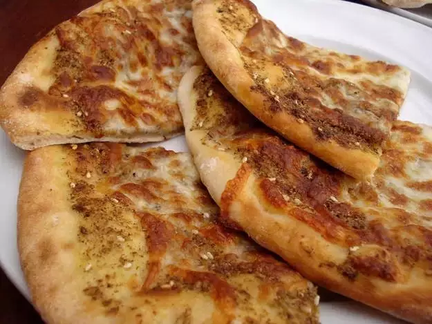 ▲Ehab Dahdouli说,在黎巴嫩,流行吃Manakish,是一种烤的芝士面包片,配着番茄一起吃。【印度尼西亚】