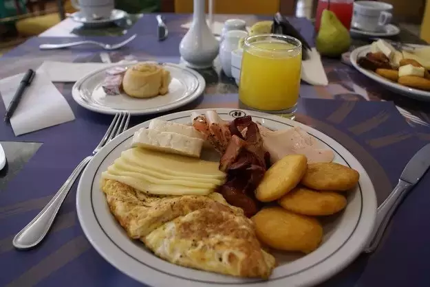 ▲Rowan Vasquez说,委内瑞拉的经典早餐是夹着芝士、火腿、鸡肉或鱼肉的一种叫Arepas的玉米饼。周末的早上,我们则还会吃一顿大的,包括黑豆、牛肉丝配蔬菜、白芝士、蔬菜炒鸡蛋、牛油果以及前面提到的Arepas。【柬埔寨】