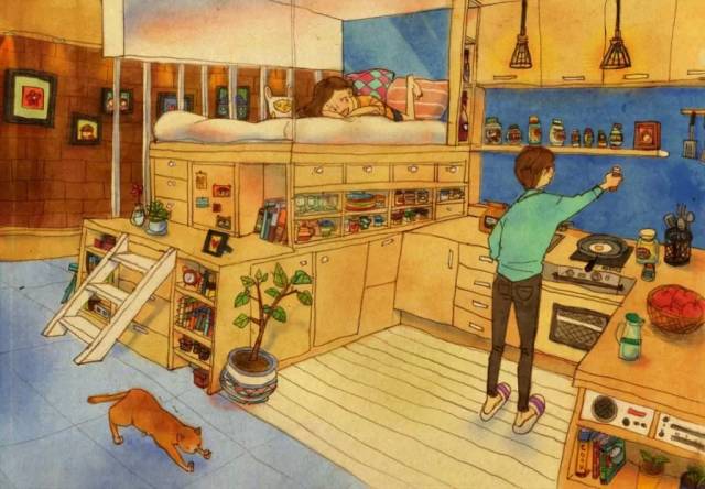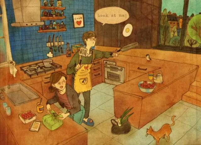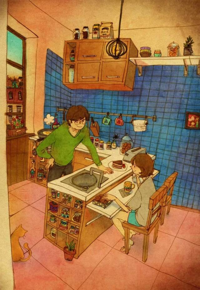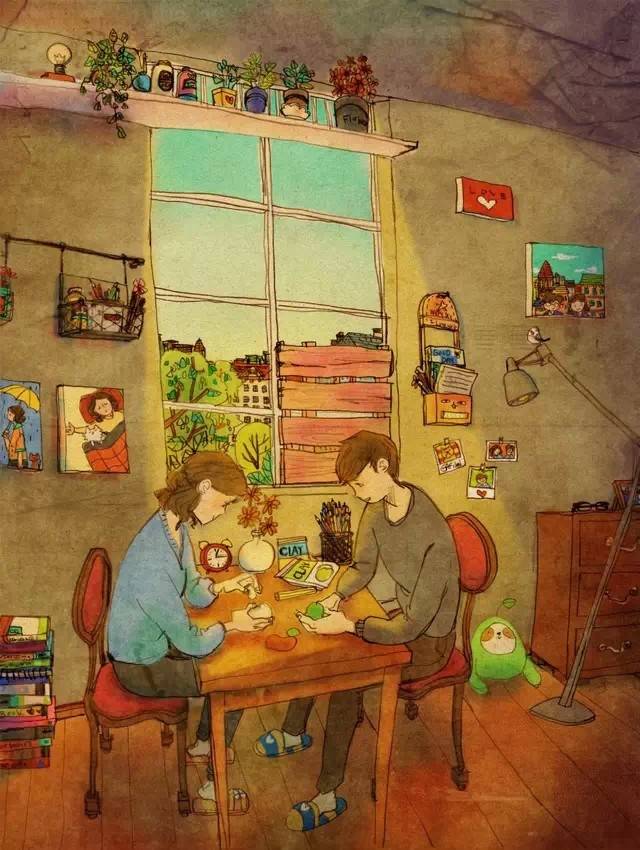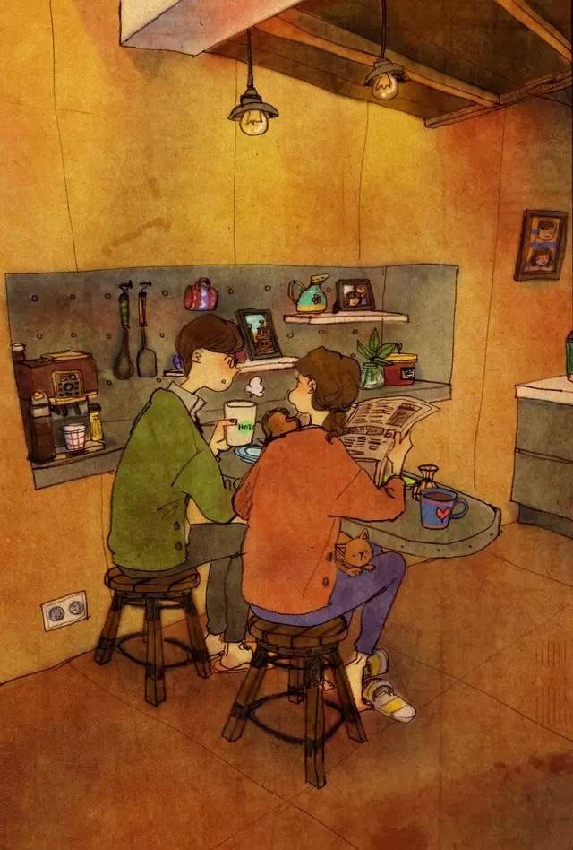 爱咖啡,是一种优雅的生活方式,爱咖啡,让我们聚在一起!与阿啡分享咖啡乐趣,请加微信个人号:acoffee520,随时交流,乐在分享。【阿啡导读】韩国插画家puuung1(퍼엉)的甜蜜插画作品,用手中的画笔将自己和爱人的生活工作记录下来,将平淡的生活化为感人的画面,色彩也很暖心窝。也许幸福,就是这个样子吧 :)