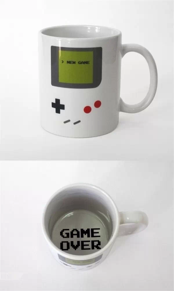 NO12.游戏迷杯设计师Tiago Gonçalves是个游戏爱好者,他把自己的马克杯设计成一个游戏,喝水是NEW GAME,喝完以后就GAME OVER了。