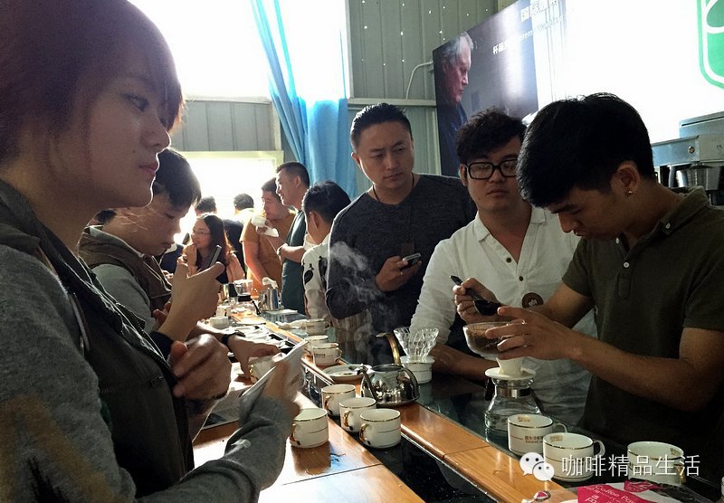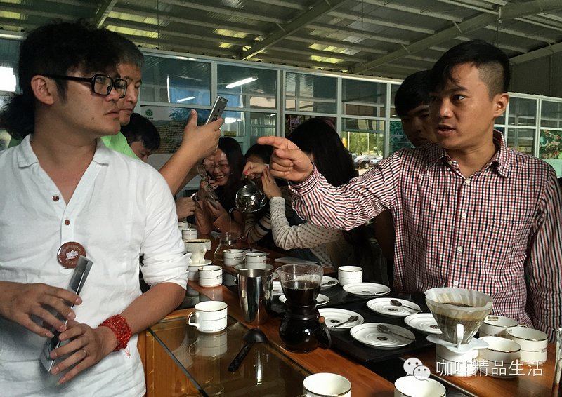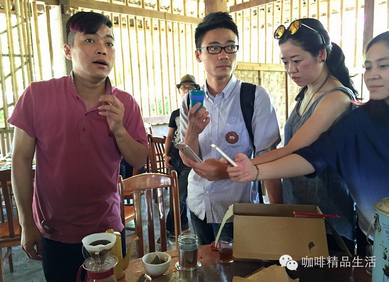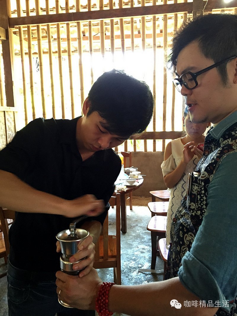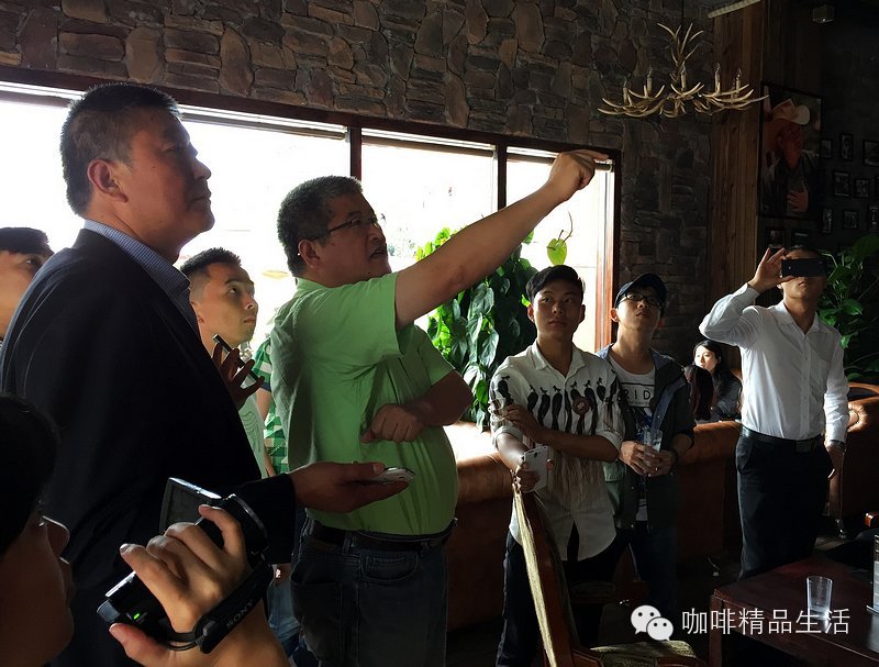 图/文:阿啡@咖啡精品生活 爱咖啡,让我们聚在一起。与阿啡分享咖啡乐趣,请加微信个人号:987911797,随时交流,谢谢。一群天南地北的咖啡人聚在一起,会干出些啥事来呢?阿啡负责任的告诉你,那是三更半夜还在玩手冲喝咖啡聊经验,还有就在咖啡庄园里干出些别人常人做不出的事!不信?一起来瞧瞧!——第一期#云南咖啡庄园之旅#人物特写。第一个关键词:交流。思维的碰撞,价值的共享。来自舟山的大叔分享其在咖啡馆装修设计方面的经验。
