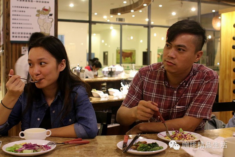 他们俩在讨论云南的咖啡生豆到底要进50公斤还是进500公斤,大手笔一点,那就定一吨吧 :)