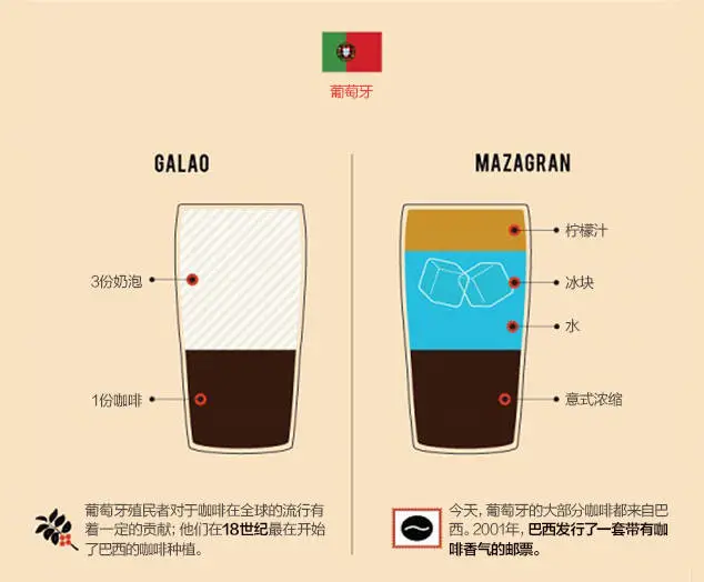 如果你在葡萄牙,且不怕冒险,那就点一个叫“Mazagran”的咖啡。它由水、浓咖啡、和柠檬果汁调制而成。