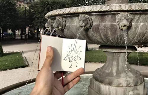 爱咖啡,让我们聚在一起。与阿啡分享咖啡乐趣,请加微信个人号:987911797,随时交流,谢谢。Elyx,是Yacine Ait Kaci的一个小小笔记本。他带着它四处游荡,遇见一些场景就即兴灵感创作,画出一个与周围环境互动得很high的小人,然后Yacine Ait Kaci再把它们都拍下来。这个作品算得上是童心满满,并超越文化和语言的障碍,让世人皆可会心一笑。