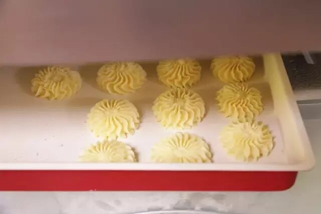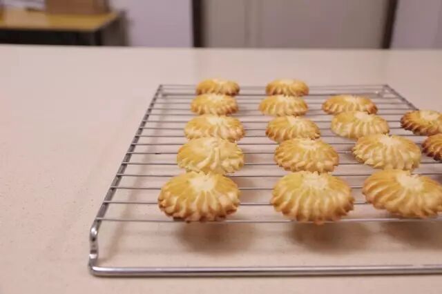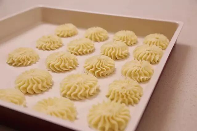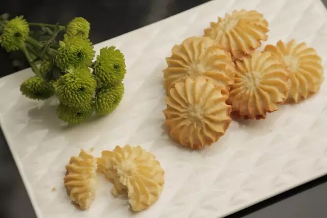 温故知新 | 超好做的软香芝士曲奇,一百遍都吃不腻! 2022-11-15 责任编辑:蛋蛋 133 各种网红曲奇热度不曾消减价格昂贵而且品质口味无保障其实曲奇是最好做的甜品用料常见不贵步骤也很简单即使是小白也能hold住自己动手做的芝香软曲奇分分钟甩网红曲奇们几十条街~软香芝士曲奇参考量:可做18块曲奇黄油80g细砂糖60g全蛋液40g柠檬汁几滴低筋面粉113g杏仁粉20g芝士粉20g盐2g①准备工作:-鸡蛋冰箱拿出后用温水回温(或自然放置回温)-黄油室温软化到图中所示的状态②黄油打发到体积膨胀、颜色发白。③加入细砂糖,用电动打蛋器搅打至图中状态。④加入全蛋液,继续用电动打蛋器搅打,最后完全打发的黄油液的状态像蛋黄酱一样顺滑。⑤滴入几滴柠檬汁,用刮刀翻拌均匀。这里加入柠檬汁是为了除去蛋腥味。⑥低筋面粉筛入黄油中,用刮刀压拌均匀,直至完全没有干粉。压拌手法参照下面的动图哦~⑦加入杏仁粉、芝士粉和盐,用刮刀继续压拌均匀。(划重点:盐一定要放到2g,不能少放!这款曲奇中的盐味是点睛之笔,如果不放或少放,味道会失色~)⑧裱花袋里装入16齿裱花嘴,然后把裱花袋套在一个细高的杯子上,把曲奇面糊倒入裱花袋。⑨减掉裱花袋的前端,露出裱花嘴。然后用塑料刮板把面糊集中刮到裱花袋前端。⑩竖直在烤盘上挤出花型的曲奇。(注意!普通烤盘最好垫油纸!否则曲奇可能无法顺利取下来。由于图中的中国红烤盘不粘性较好,所以不垫烤盘也没问题~蛋蛋:还不快买呀~)⑪烤盘放冰箱冷冻5分钟左右。稍加冷冻的曲奇,烤的时候形状会保持得更好。⑫取出烤盘,烤箱中层180度烤12-14分钟,以曲奇表面呈金黄色为准。烤好后将曲奇从烤盘转移晾架上,让曲奇底面也能够通风,晾凉后就能吃啦~(CONY:一定要等晾凉后再吃哦!隔夜再吃会更棒!因为刚烤出的曲奇边缘还有些硬,隔夜之后整个曲奇都是香软状态,非常好吃~) 预览时标签不可点