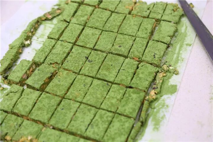 温故知新 | 雪花酥中的颜值担当,速度get! 2022-11-15 责任编辑:蛋蛋 689 台湾流行的网红小零食雪花酥结合了牛轧糖的奶香和沙琪玛的酥松坚果和蔓越莓又赋予了它满满能量配料丰富到可以在零食里称王每一口都是大大的满足最重要的是!这么棒的小零食!居然做起来毫无难度~~抹茶雪花酥抹茶酥:液体棉花糖150g无盐黄油40g无糖奶粉40g抹茶粉10g蔓越莓干60g混合坚果60g饼干180g装饰:奶粉16g抹茶粉8g配料选择小心得:①棉花糖的选择:CONY用的是液体棉花糖,牌子是美国原装的法罗夫,一来没有普通棉花糖那么多添加剂(当然,不可能完全没有),二来口感软硬度刚刚好,不用担心棉花糖一不小心加热过久变硬(变硬会影响口感,而且很难操作)。如没有液体棉花糖,也可使用普通棉花糖。②饼干的选择:网上有很多人说,得用台湾的小奇福饼干,但目前某宝有货的大多都是台湾商家,需要等待的时间比较久,而且买的还是不明来路的分装品。这次CONY用的是韩国的EDO饼干,口感酥到不行,非常好用,超市和各大电商平台也容易买到。①蔓越莓干和坚果分别切碎,饼干用手稍微掰一掰,放一边备用。②黄油放在不沾锅中,小火融化,注意不要火太大。③倒入棉花糖,用硅胶铲或者刮刀搅拌到看不到黄油的颜色,两者完全融合。TIP:如没有液体棉花糖,就用普通棉花糖,重量一样。④向棉花糖黄油糊中倒入奶粉,再次用刮刀搅拌均匀。TIP:如果不用厨师机搅拌制作,请在锅里直接加入抹茶粉。因为这次CONY用厨师机操作,所以抹茶粉是在棉花糖黄油糊倒入厨师机之后才加入的。⑤将其他配料与棉花糖拌匀。方法1-直接用手拌匀:将棉花糖倒入大盆中,再倒入切碎的坚果和蔓越莓干、饼干,戴好一次性食品手套,趁热用手拌匀。方法2- 用厨师机搅拌:将棉花糖倒入厨师机搅拌盆中,再筛入抹茶粉大致拌匀,然后倒入切碎的坚果和蔓越莓干、饼干,用黄油桨低速搅拌。注意这里一定要低速,否则饼干会被打得太碎。(使用的厨师机型号是凯伍德KVL4100)⑥拌匀后,立刻趁热倒入烤盘中,大致压实、压匀。⑦然后用另一个干净的烤盘,压在上面,再用手掌彻底压实。⑧将装饰用的奶粉和抹茶粉混合均匀,取一半筛在抹茶酥的正面。⑨然后在抹茶酥上面铺一层烤纸,再次用另一个烤盘压上,用手掌压实酥饼表面的抹茶奶粉。⑩倒扣烤盘里的酥饼,轻轻敲击脱模。脱模后在表面筛上剩下的抹茶奶粉,然后重复第9步,压实表面的粉类。⑪用锯齿刀将酥饼切成合适大小的长条形小块,抹茶雪花酥就完成了。保存方法:装进密封袋(或保鲜盒)室温存储。因为表面抹茶易氧化,所以一定要密封好~做好的雪花酥颜值高到没朋友!抹茶的颜色也美到根本不用修图~牛轧糖搭配饼干的口感十分特别酥松中又带有恰到好处的嚼劲配料的丰富度从侧面就能看出饼干的松酥、坚果的香气、蔓越莓的酸甜......吃起来幸福感爆棚~ 预览时标签不可点