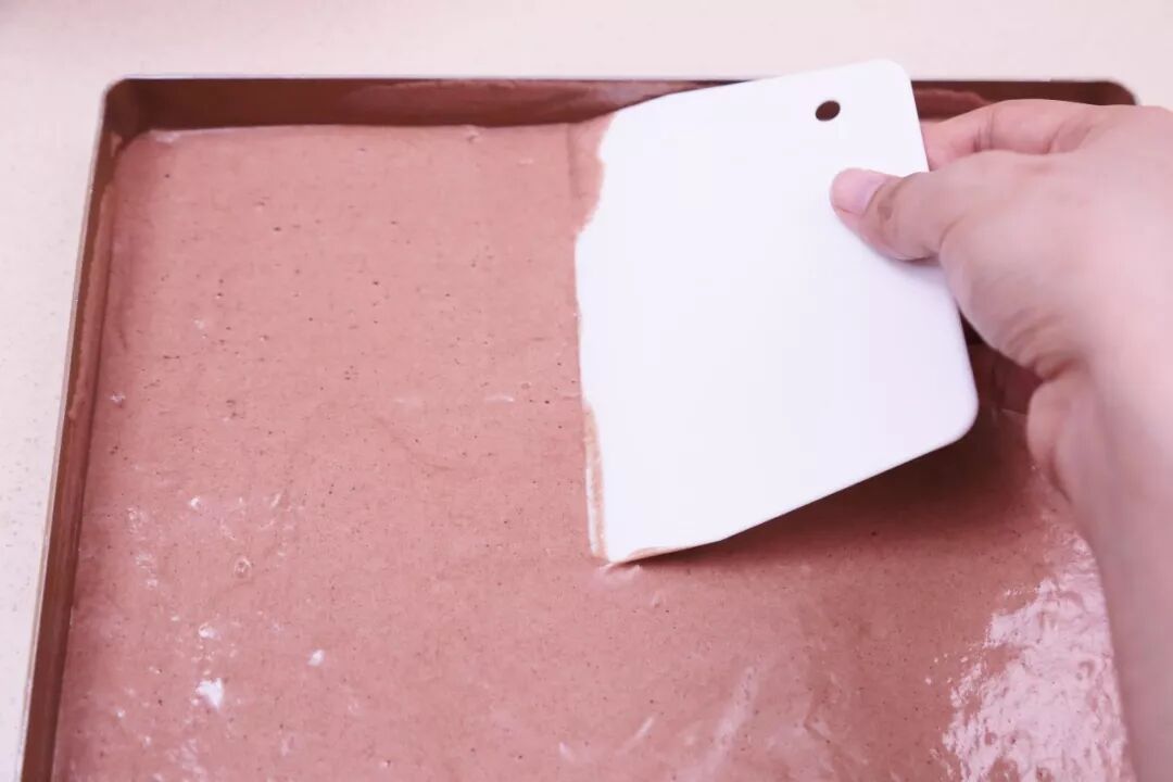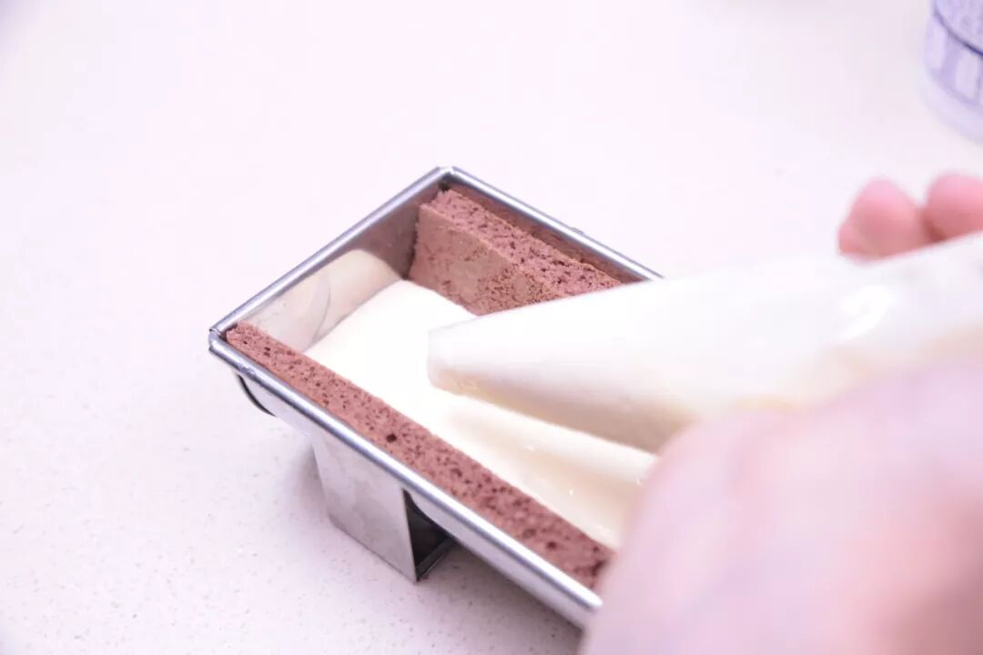 温故知新丨童年三色杯冰淇淋,一夜之间又成新网红!怎么做到的? 2022-12-06 责任编辑:蛋蛋 384 说起儿时最爱的冰淇淋那一定是三色杯啦!一次就能吃到三种口味而且颜色缤纷好看简直满足了对冰淇淋的所有幻想~这么多年过去了经典三色杯居然又翻红?原来是因为做成了蛋糕卷无需奶油和色素又不用打发颜值高还这么超级简单快手!三色冰淇淋蛋糕卷模具:28cm方烤盘、6寸半圆U型慕斯/蛋糕卷模具(18.2*7.6cm)可可海绵蛋糕片:鸡蛋4个蜂蜜10g细砂糖50g低筋面粉50g可可粉10g黄油16g牛奶24g内馅:香草冰淇淋适量草莓冰淇淋适量巧克力冰淇淋适量制作蛋糕卷:①准备工作:黄油与牛奶一同加热成黄油牛奶液;模具中铺上一层保鲜膜备用;提前预热烤箱,上下火180度。②将蛋黄加入蜂蜜搅拌均匀。③将蛋白分三次加入细砂糖,用电动打蛋器打至7-8分发的干性发泡状态,提起打蛋头有直立的小角、蛋白霜有光泽。④将蛋黄分次加入蛋白中,继续用电动打蛋器搅打至完全搅匀,这时提起打蛋头的蛋液呈微微弯曲的小角。⑤将可可粉与低筋面粉混合后过筛加入面糊中,用刮刀轻轻翻拌均匀至看不见干粉。⑥黄油牛奶液沿着刮刀倒入面糊中,搅拌至黄油液完全与面糊融合。⑦将面糊从20-30cm高处倒入铺了烤纸的烤盘中,用刮板将蛋糕糊抹平,再震一次烤盘将大气泡震出。⑧放入烤箱中下层,以上下火180摄氏度烤约15分钟,取出晾凉备用。组装:①蛋糕晾凉后,将冰淇淋提前从冰箱中取出,软化至可缓慢流动的半液态状(大约需要20分钟)②将蛋糕片修去四边不平整处,并将蛋糕片切出符合模具的形状:-U型顶层蛋糕片:长18.2*宽12cm-底层蛋糕片:长18.2*宽7.5cm③将U型顶层蛋糕片先垫入铺了保鲜膜的模具中,底层蛋糕片则先用保鲜膜封好备用(防止变干)。做的时候一个不小心忘记铺保鲜膜...脱模的时候差点哭出来...④取香草冰淇淋(白色)50g、草莓冰淇淋(粉色)60g、巧克力冰淇淋(咖啡色)60g,分别装入裱花袋中TIP:冰淇淋的分量仅供参考,大家自行调整⑤将白色冰淇淋寄入蛋糕中,放入冰箱中冷冻半小时至1小时,完全凝固后取出,挤入粉色冰淇淋,再次冷冻半小时以上④粉色冰淇淋凝固后取出,填入咖啡色冰淇淋,然后盖上蛋糕片,包上保鲜膜放入冰箱冻2小时以上,至所有冰淇淋层凝固,取出倒扣脱模,揭掉保鲜膜就可以吃啦~保存方式:密封冷冻保存,3天内食用完毕用U型模具做蛋糕卷造型精致又特别而且做起来也简单丝毫不用担心卷裂的问题用三色冰淇淋做内馅家里连奶油和色素都不用准备而且也省去了打发的步骤做起来简单又轻松超适合懒到啥也不想做的夏天!而且吃不完可以冻起来不用怕浪费吃太多每次取出一块吃甜蜜冰凉得恰到好处~用勺子从头挖到底最外面是柔软的可可蛋糕皮然后吃到三种口味的冰淇淋蛋糕搭配着冰淇淋的口感比奶油更冰凉也更解腻满足就两个字~~ 预览时标签不可点