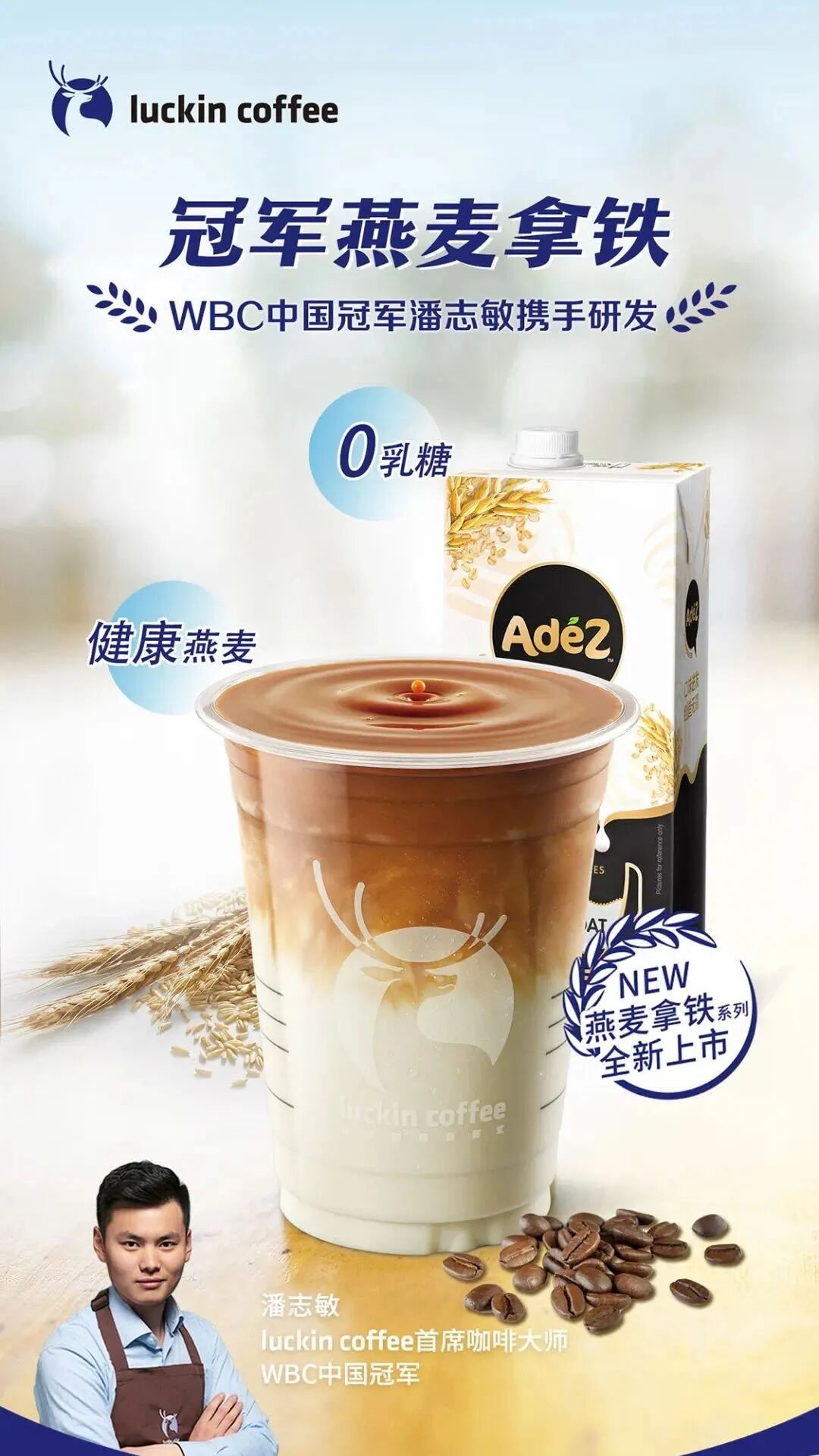 精选全球咖啡茶饮行业一周热点资讯Jan. 23th ~ 29th大咖周报01.瑞幸携手WBC中国冠军潘志敏推出新品“冠军燕麦拿铁”,选用可口可乐旗下高端植物基品牌AdeZ植白说燕麦奶,搭配IIAC国际咖啡品鉴大赛金奖咖啡豆,目前新品率先登陆成都和杭州门店。
