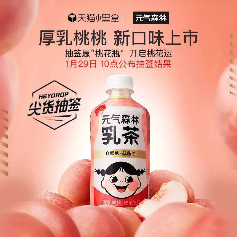 03.元气森林推出限定口味“厚乳桃桃乳茶”,新品限量1000件仅在天猫小黑盒抽签发售。