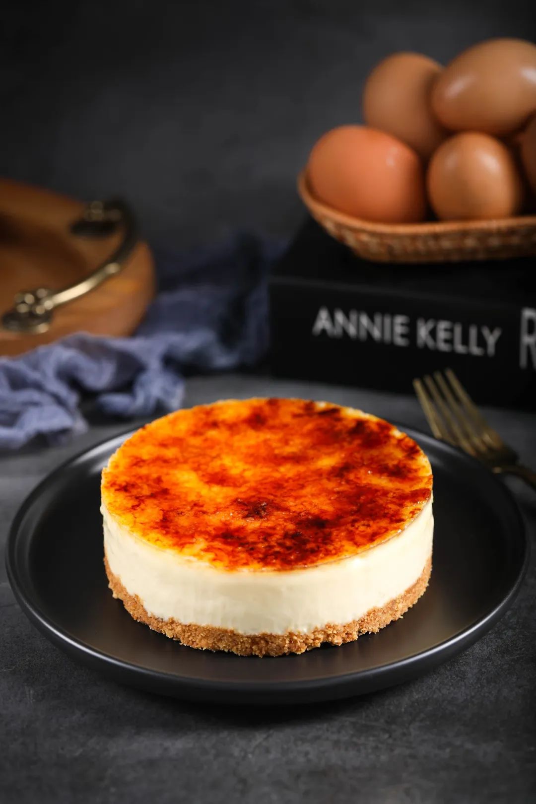 在芝士表面均匀的撒上白砂糖,用喷枪炙烤芝士。焦黄的表皮,看起来粗犷且质朴,切开后却拥有顺滑柔软的内里。微苦的焦糖脆脆邂逅浓郁的芝士,不甜也不腻,外刚内柔,口感顺滑,入口即化。一口就是花式甜蜜。Caramel cheese cake