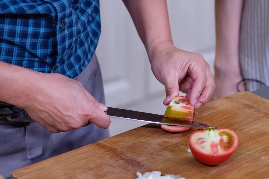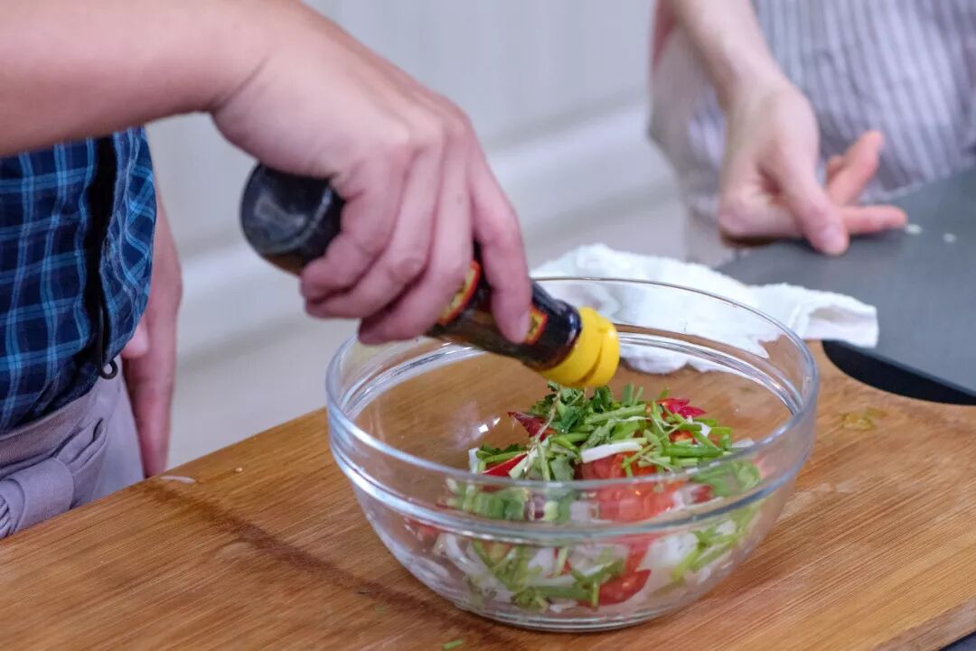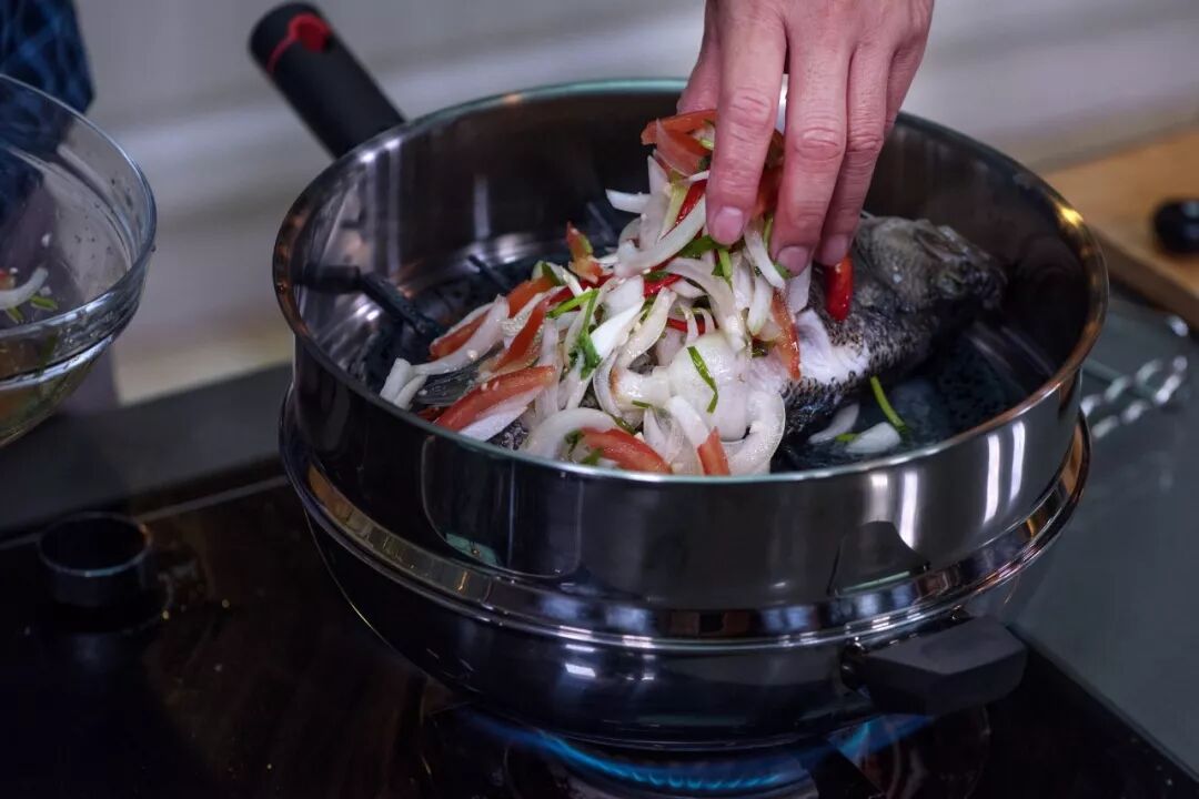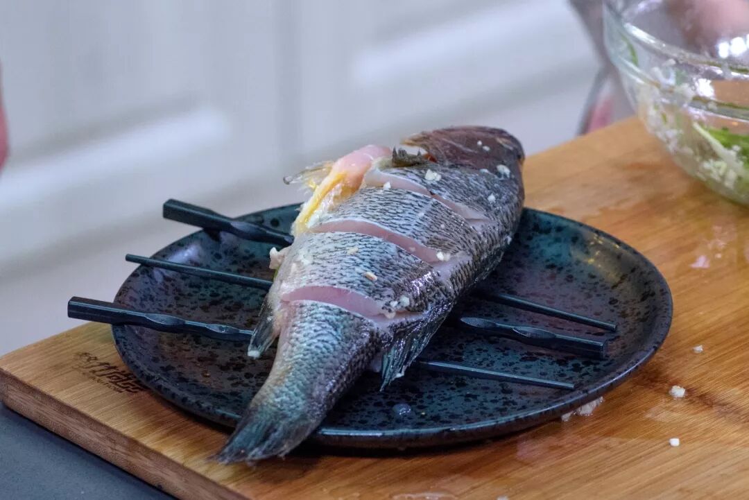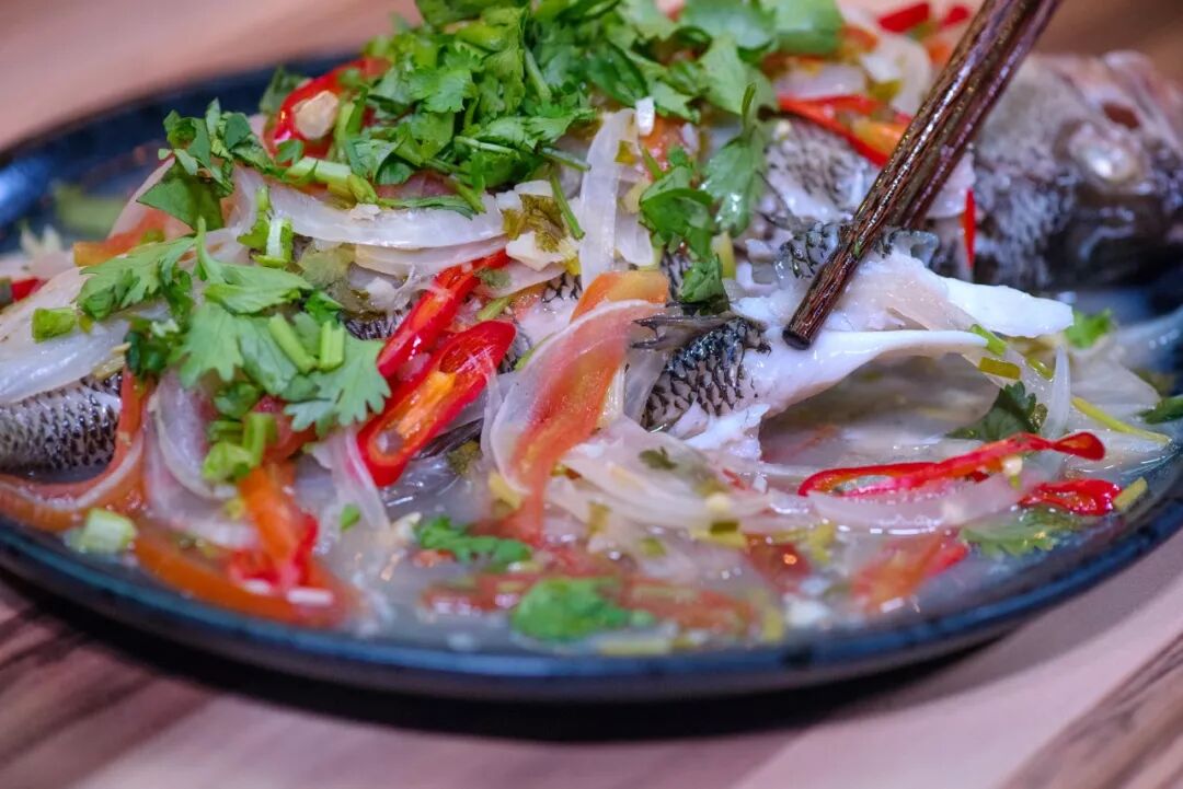 詹姆士的厨房丨这一定是夏天令你胃口大开的最佳料理~ 2023-02-07 责任编辑:厨房小跟班 292 酸甜苦辣咸就犹如人生五味一般,都各具特点。那怎么才能在烹饪的过程中把酸甜苦辣咸很好的结合呢?今天就以“酸”为代表,做一道经典泰式料理——泰式柠檬鱼,看看热带国家的人是怎样做开胃菜的吧!蒸锅、水晶碗盐 适量葱 4根清酒 适量鲈鱼 1条番茄 1颗洋葱 1/4颗香菜 2株柠檬 1颗鱼露 适量蒜末 1匙红辣椒 1根cription-url="https://mmbiz.qpic.cn/mmbiz_gif/2zxaP93End06WNgGYddfLoBLVicSCSXSFt7oDQV7VaZel7IN6Rdfvf9NiagdG6EevL3sAjRYkhdUcpEqtsLib2GdA/0?wx_fmt.gif" data-copyright="0" data-ratio="0.5592592592592592" src="https://mmbiz.qpic.cn/mmbiz_gif/2zxaP93End06WNgGYddfLoBLVicSCSXSFt7oDQV7VaZel7IN6Rdfvf9NiagdG6EevL3sAjRYkhdUcpEqtsLib2GdA/640" data-type="gif" data-w="540" />【1】处理鱼将新鲜鲈鱼去鳞,去除内脏,洗净血水用厨纸擦干。然后在鱼肉上划刀口,使得鱼肉在烹制过程中受热均匀和入味。【2】腌制在碗中倒入适量清酒,同时再加入适量盐、蒜末和揉搓后的葱,搅拌均匀。然后把鱼放入碗中让腌料均匀地粘在鱼身上。▼清酒用来腌鱼可以去除腥味将葱揉搓后再放入清酒中,能更好的出味。【3】蒸鱼待蒸锅里的水煮沸后将腌制好的鱼放入盘中用筷子架空,然后将蒸鱼盘放入蒸锅中盖上锅盖大火蒸5分钟。▼这样将鱼架空来蒸鱼可以使得鱼肉受热更加均匀鲜嫩。【4】切蔬菜将洋葱、红辣椒切丝,番茄去蒂去瓤后切丝,葱切成段放入水晶碗备用。然后再将香菜的根茎部分切段放入碗中,香菜叶放一边备用。【5】调味向水晶碗中加入适量鱼露、盐、清酒、蒜末,搅拌均匀。【6】蒸鱼加料大火蒸鱼5分钟后将蔬菜加入,均匀铺在鱼身上。然后再盖上锅盖,大火继续蒸3分钟。▼如果过早放入蔬菜会影响蔬菜的色泽和脆度。【7】切柠檬将柠檬对半切开备用。【8】起锅蒸鱼还剩最后1分钟时关火并保持锅盖盖好。1分钟后将蒸好后的鱼从锅中取出,并抽出架鱼的筷子,再将柠檬汁挤在鱼身上。最后撒上香菜末即可。▼如果不提前关火,揭开锅盖时鱼肉遇到蒸锅外面的冷空气会因为热胀冷缩而缩紧,影响口感。蒸好鱼后再挤柠檬汁可以防止酸味受热而降低酸度。一道柠檬鱼让你尝到酸甜辣的味道,这样蒸出来的鱼看起来完全想不到是酸酸的~ 五颜六色的蔬菜丝铺在上面就很吸引人,闻起来就能勾起食欲。鱼肉吃起来很鲜嫩而且带有柠檬的酸味,同时又能尝出略微的辣味,非常给劲。不但鱼肉好吃,蒸在里面的蔬菜也都很脆甜~ 快来尝一尝吧!▼▼▼泰式柠檬鱼:“我长这个样子!”本栏目由i烘焙&詹姆士的厨房节目一同合作 预览时标签不可点
