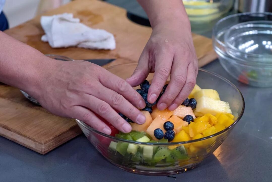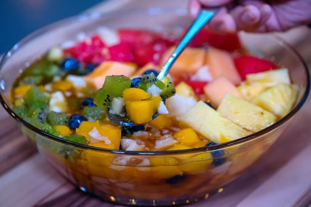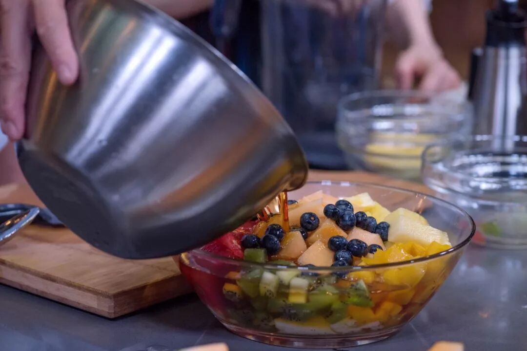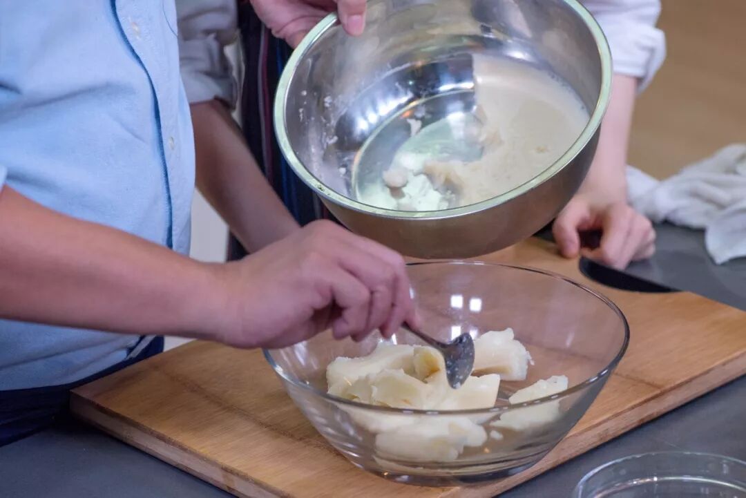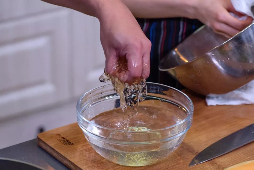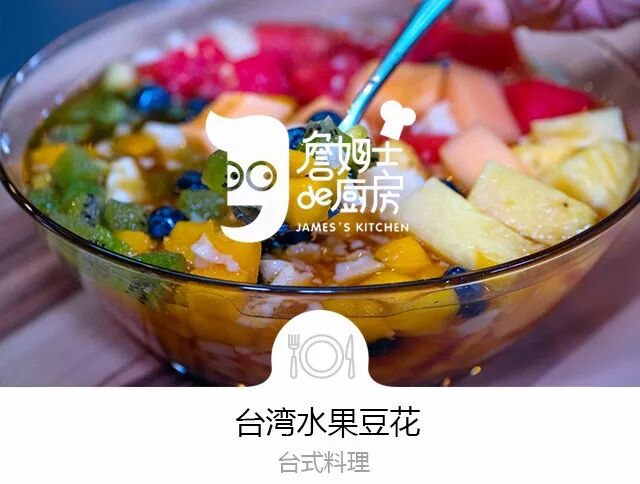 詹姆士的厨房 | 台湾水果豆花,一年 天都爱它 2023-02-08 责任编辑:厨房小跟班 24 在台湾念书的时候深深爱上了一道甜品——水果豆花。不仅适合夏天吃,一年365天我300天都会吃它。吃过你一定也会爱上它!炒锅、水晶碗白糖 1杯西瓜 1碗菠萝 1块芒果 1碗蓝莓 1碗豆浆 1碗猕猴桃 1碗哈密瓜 半个吉利丁片 3片cription-url="https://mmbiz.qpic.cn/mmbiz_gif/2zxaP93End2z6h3aEkTxc5MxrcKehJYwV6HCD9oTs8gprPeAcFFBzFNvKXHUmlp7MKpe5b0tfhjYopr5JmibQvw/0?wx_fmt.gif" data-copyright="0" data-ratio="0.562" src="https://mmbiz.qpic.cn/mmbiz_gif/2zxaP93End2z6h3aEkTxc5MxrcKehJYwV6HCD9oTs8gprPeAcFFBzFNvKXHUmlp7MKpe5b0tfhjYopr5JmibQvw/640" data-type="gif" data-w="500" />【1】 泡发吉利丁片将吉利丁片放入水中泡发。▼吉利丁片:是从动物的骨头提炼出来的胶质,多用于甜品的制作。【2】做豆花将豆浆煮熟后关火,放入泡发的吉利丁片。▼豆浆需要充分煮熟后才能食用。用吉利丁片使豆浆凝固做成的豆花只能吃凉的。【3】凝固豆浆搅拌豆浆使吉利丁片融化。▼豆浆含有大量的植物蛋白,又被称为植物奶。【4】过滤用滤网将豆浆过滤。【5】做豆花将过滤后的豆浆放入冰箱冷藏。【6】制作焦糖将白糖放入锅中开火熬制。【7】制作焦糖白糖炒至变色融化后加入适量水,翻炒均匀后盛入碗中放凉。【8】盛盘将冷藏后的豆花装入碗中。【9】加水果将猕猴桃、芒果、西瓜、菠萝、哈密瓜切成丁放在豆花上,最后在放上适量蓝莓。【10】加焦糖水将冷却后的焦糖水放入碗中,即可享用这道美食了!用吉利丁片凝固的豆花,吃起来非常的Q弹,口感很像布丁,非常营养美味。焦糖水散发着淡淡的香味,让水果的甜味更加浓郁。学会了怎么做这道水果布丁,一年365天都能吃到它了!▼▼▼台湾水果豆花:“我长这个样子!”本栏目由i烘焙&詹姆士的厨房节目一同合作 预览时标签不可点