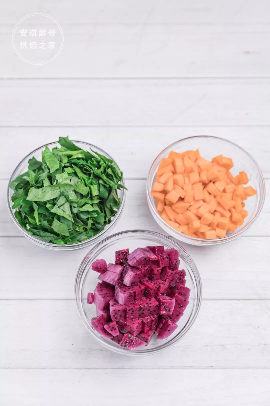 白面饺子吃腻了,彩色饺子更有食欲哦~ 2023-02-13 责任编辑: 60 冬至,一年中的最后一个节气,过了这天,就进入了一年中最冷的时候。这天,吃饺子肯定是必不可少的啦。现在市面上最多见的就是普通的白面水饺,吃了这么多年,不免有些单调。所以,是时候来一波五颜六色的水饺啦,颜色从哪来?当然是用天然色素——有色果蔬!我们这次挑选了三种,菠菜、胡萝卜和红心火龙果。寒冷的冬至,和家人一起大快朵颐的吃着热气腾腾的彩色饺子;享受味蕾的同时,也让眼睛过过瘾,把“彩虹”一口吃掉。这么好看的饺子,连不爱吃饭的小朋友,也都吃得“心甘情愿”呢哈哈~彩色饺子菠菜叶一把胡萝卜半根红心火龙果半个香葱100g娃娃菜3棵猪肉馅750g生姜10g盐适量生抽适量蚝油适量香油适量香味汁适量彩色饺子皮:菠菜皮中筋面粉400g+菠菜汁180g胡萝卜皮中筋面粉400g+胡萝卜180g火龙果皮中筋面粉400g+火龙果汁180g准备工作:-把所需果蔬洗净,菠菜只留菜叶,胡萝卜去皮切成丁,火龙果切块开始制作:①将备好的果蔬分别放入料理机中榨成汁。②用筛网分别进行过滤,留下汁。③在猪肉馅中加入切好的娃娃菜末,根据个人口味适量加入香油、蚝油、生抽、盐、鲜味汁调味,搅拌均匀后放入冰箱冷藏。④把面粉和果蔬汁分别混合均匀,揉成光滑的面团,面团要稍微干一点比较好。⑤将面团切一部分,搓成长条,等分揪成小剂子,每个小剂子按成圆饼状用擀面杖擀薄。⑥取出肉馅,开始包饺子,包成自己喜欢的饺子形状。⑦包好后煮、蒸、煎都是不错的选择,根据个人口味调制蘸料,就可以享用了。三种颜色和成面团之后太漂亮了,红心火龙果榨汁颜色是不是很美腻?榨完汁以后一定要用网筛过滤一下哦。意外的是胡萝卜面团,颜色温暖得让人还有些感动,看着这么赏心悦目的饺子,心情也变得很愉快呢!饺子煮出来,晶莹剔透,色泽丰富,用蒸或煎、炸,也各有各的风味儿。美味与颜值并存!适合全家人放心食用。饺子馅的选择和寓意也有着直接关系,最常见的白菜肉馅,还有“百财”之意呢。大家根据自家口味自由发挥就好啦~如果有其他疑问请在下方留言给我们看到后一定尽力回复大家愿意交流的同学可以加个微信哦:isaweir♪(^∇^*)这盘饺子一上桌,别的菜都黯然失色了热饮在手,暖心又暖胃,还要什么男朋友~浪漫又甜蜜的蛋糕,这款准没错真香警告!这是属于奶酪饼干独有的香气不想错过i烘焙推送?想随时随地查看精彩配方?只要给i烘焙加上星标就不会错过啦!还不会加小星星?戳戳小视频立刻搞定~ 预览时标签不可点