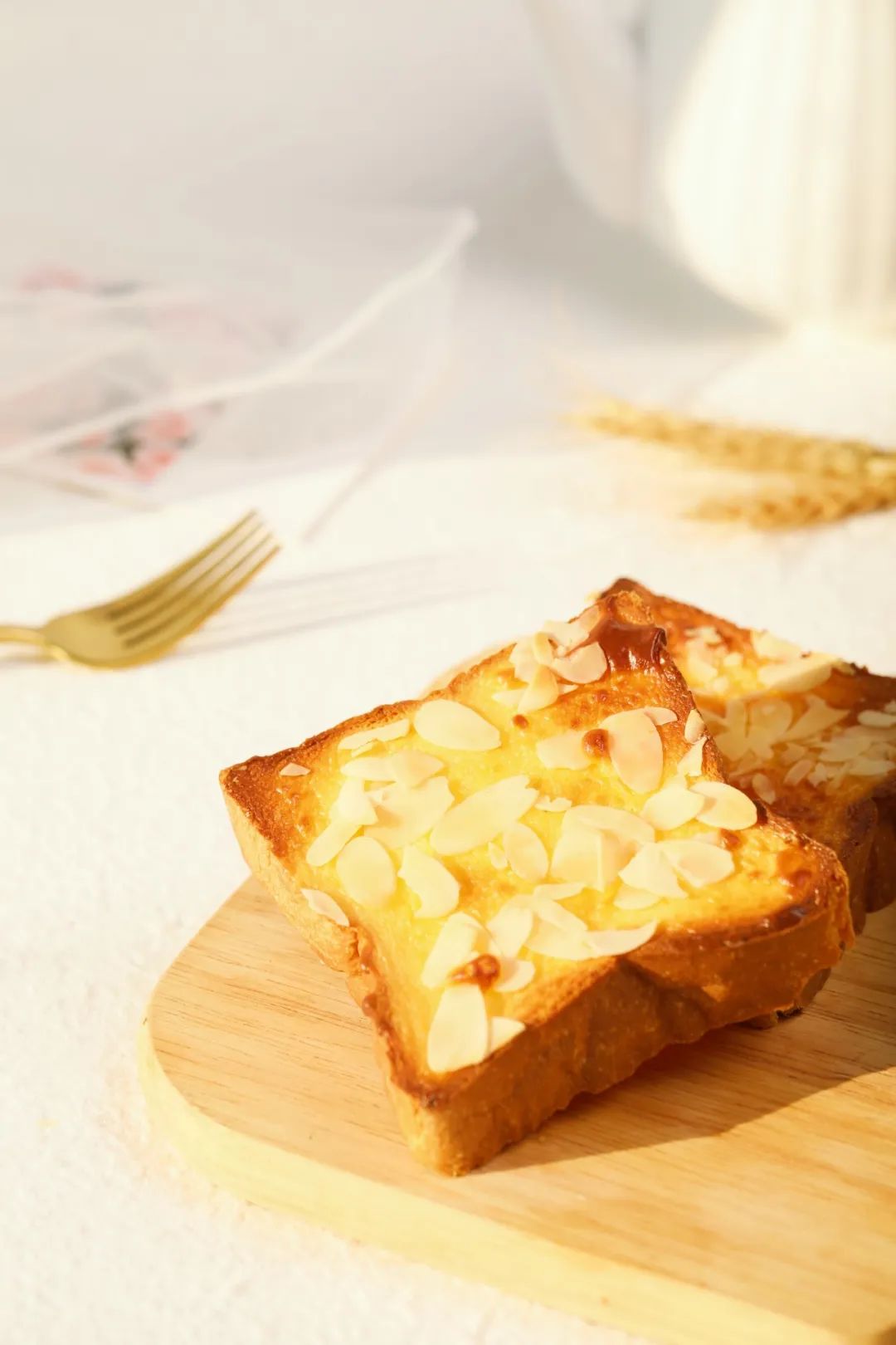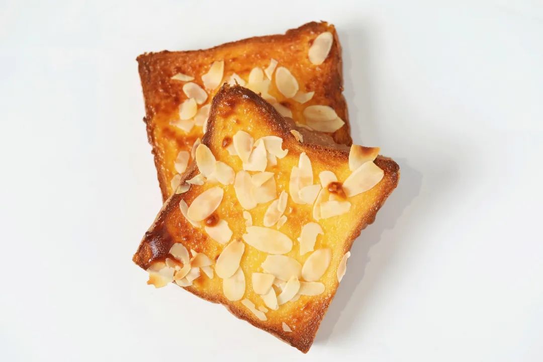 岩烧吐司(左)厚蛋黄金吐司(右)制作分享型下午茶甜品“有岩有料”——岩烧蛋糕、岩烧乳酪卷、富有地域特色的创意岩烧法甜以吸睛颜值、饱满味道、创意思路赢得了甜品爱好者关注。