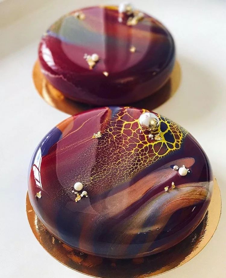 因此,他们的每一次制作都要求是完美的,也是具有观赏性的,更是...能够满足我们这些强迫症的...堪称强迫症福音...看完简直神清气爽...❶缓慢却精致的甜品淋面把制作好的“素颜”甜品架在晾网上,将颜色缤纷的淋面液沿着甜品四周淋在表面,让表面刚好被完美覆盖,多余的淋面液会顺着边沿缓缓滴落。凝固的镜面淋面微微反射着光芒,精致感十足。